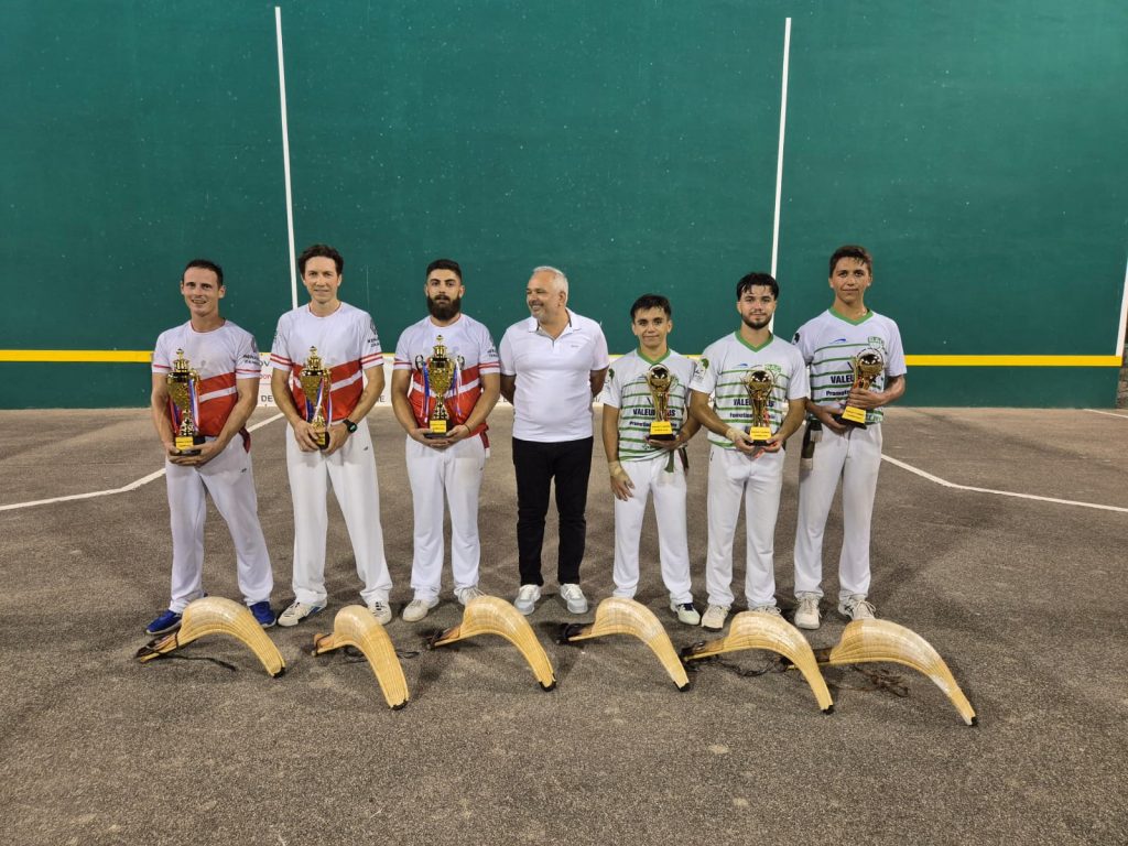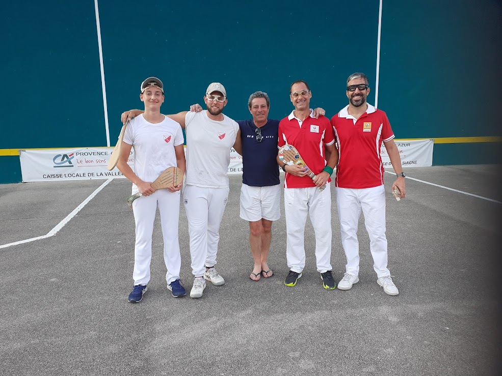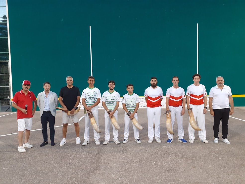 Belle soirée et une chaude ambiance qui avait débuté en lever de rideau avec un derby à paleta gomme entre Villeneuve Loubet et Plan de Grasse, les grassois dominant les échanges tout au long de la partie l’emportant logiquement. S’ensuivait la traditionnelle initiation à la pelote avec les spectateurs qui participaient à cette découverte pour la plupart.